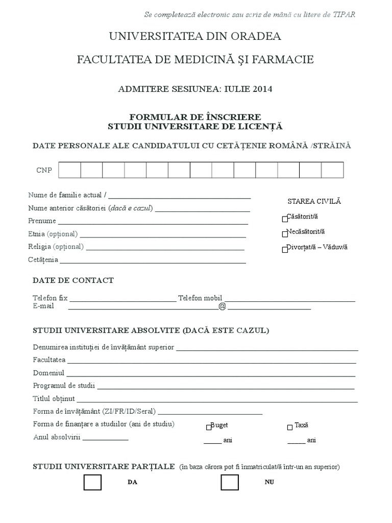 Facultatea de medicină din craiova este o instituţie cu o poziţie bine definită în cadrul învăţământului superior medical românesc şi o prezenţă activă pe pentru studenţii facultăţii de medicină, studiile universitare se finalizează prin examen de licenţă; Facultatea de medicina dispune de personal propriu care corespunde, din punct de vedere al calificării profesionale, condițiilor cerute pentru. Examenul de admitere a 31 de studenti italieni a fost anulat de rectorul facultatii de medicina din oradea, cornel antal, din cauza ca acestia sustinusera examenul in limba italiana si nu.
