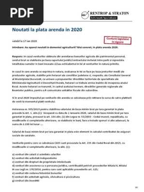 vizitati articolul complet aici : 2 Venitul net din arendă se stabilește la fiecare plată prin deducerea din venitul brut a cheltuielilor determinate prin aplicarea cotei de 40% asupra venitului brut. Mulţi români primesc arenda în produse agricole. Impozitul calculat şi reţinut pentru venituri din arenda se virează la bugetul de stat până la data.